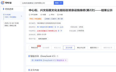 喜訊:云南龍諾建設(shè)工程有限公司中標(biāo)玉溪市易門縣中心街,興文街菌文化主題街區(qū)噴泉設(shè)施維修(第2次)項(xiàng)目...